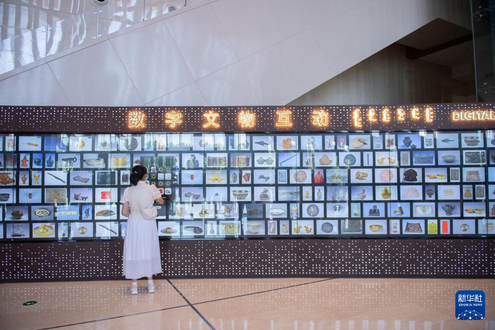 “展厅真不少,一下子不知道从哪里看起。”来自浙江宁波的游客陈颖颖,选择先通过数字文物互动墙了解馆藏文物。数字文物互动墙上密密麻麻排列有400多件文物的照片,陈颖颖轻点屏幕,文物的照片被放大,细如发丝的纹理都能看得一清二楚。
