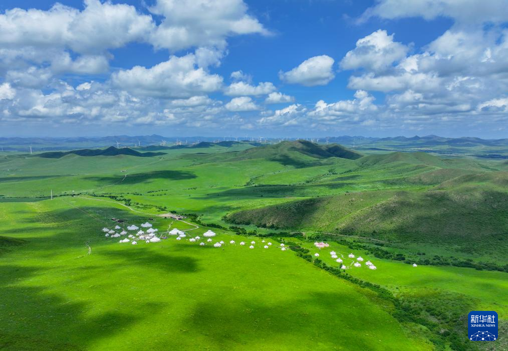 这是8月11日拍摄的内蒙古通辽市扎鲁特山地草原美景(无人机照片)。