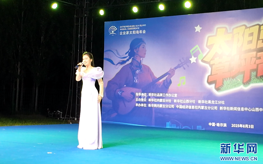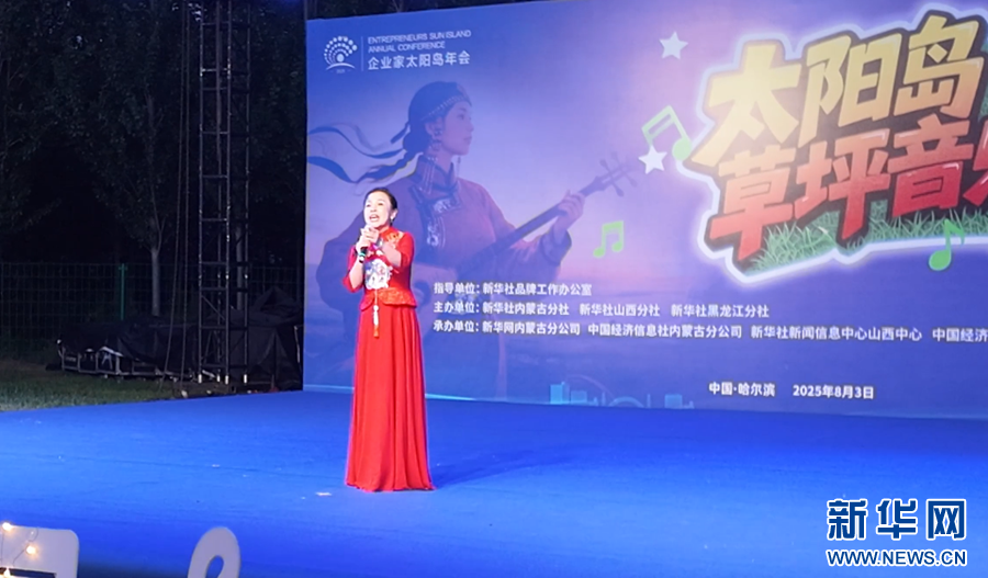 太阳岛草坪音乐节现场,歌手哈斯额日德尼演唱《锡林河》。新华网发(王伟 摄)