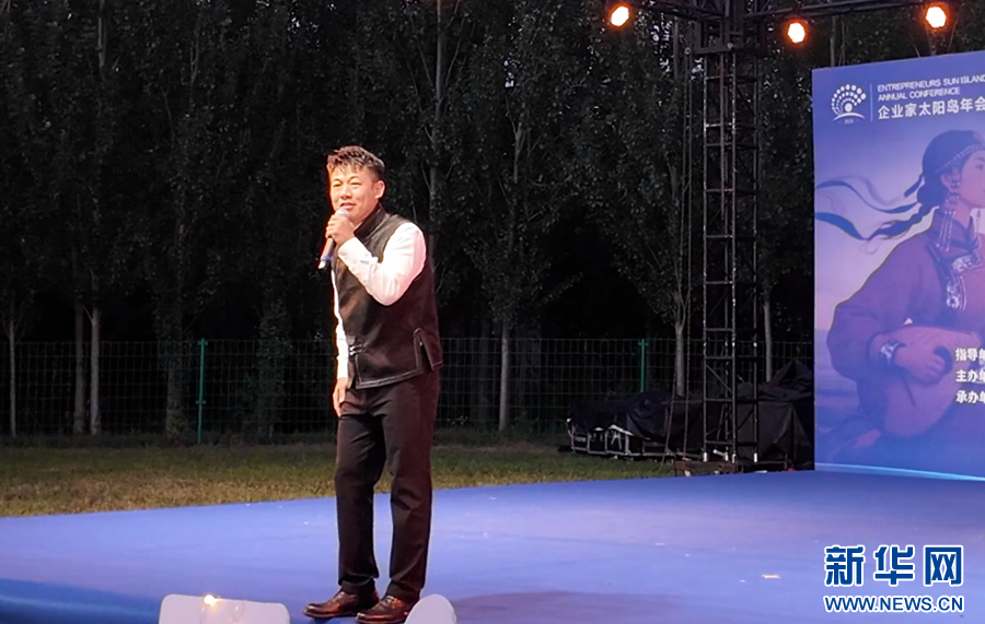 太阳岛草坪音乐节现场,歌手阿古达木演唱《酒歌》。新华网发(赵嘉伟 摄)