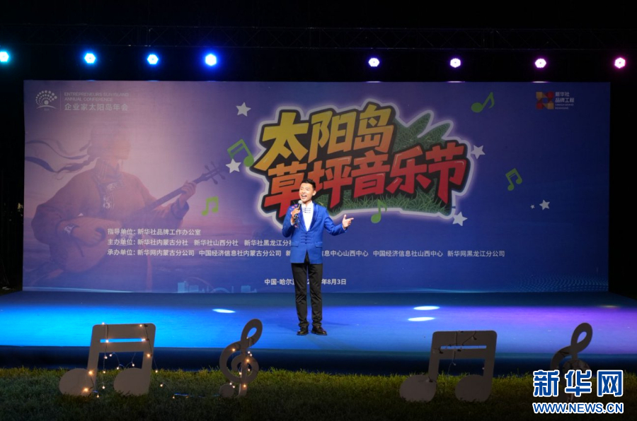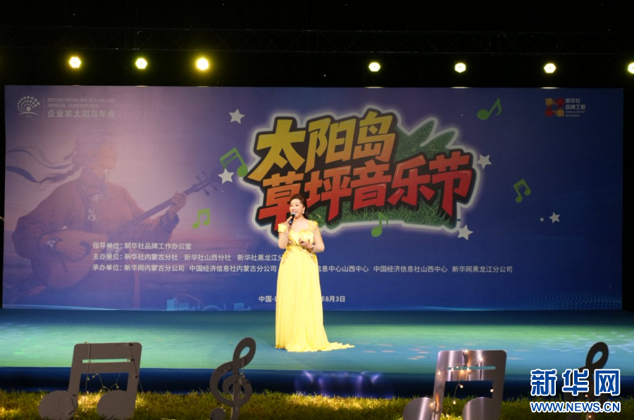 太阳岛草坪音乐节现场,歌手演唱《请到内蒙古来》。新华网发(王伟 摄)