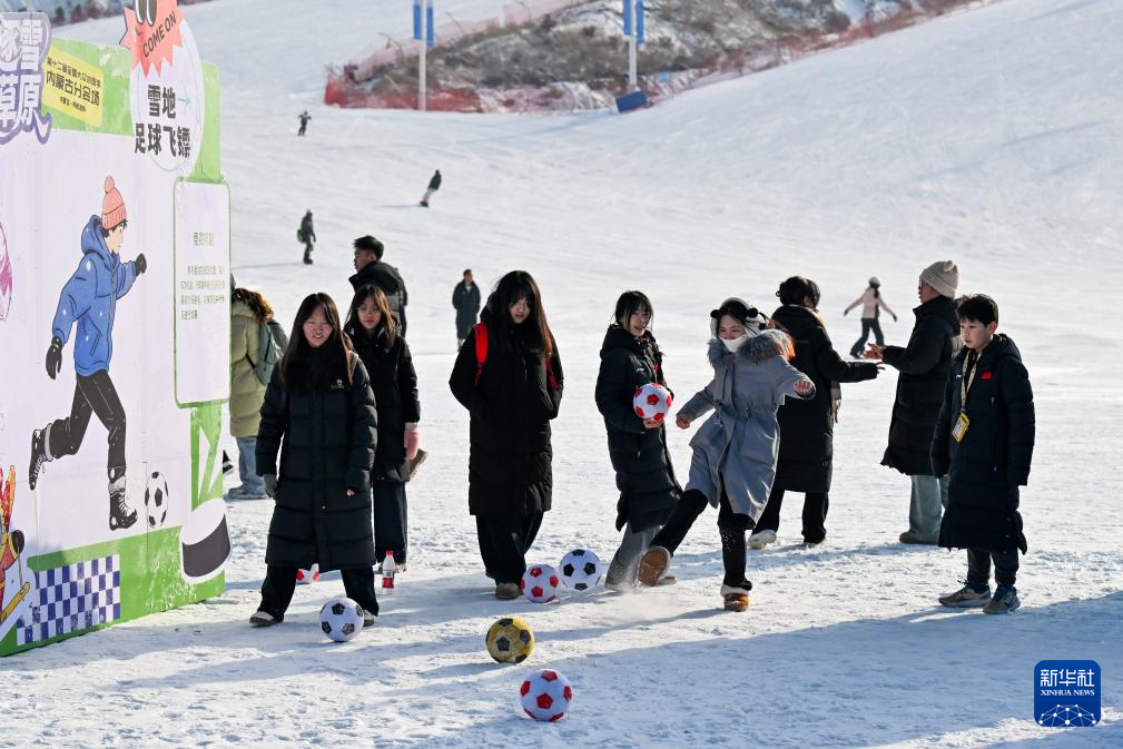 12月14日,游客在马鬃山滑雪场体验雪地足球飞镖。新华社记者 李志鹏 摄