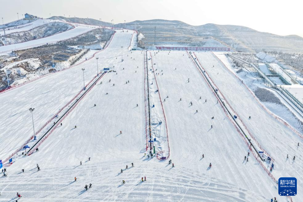 这是12月14日在马鬃山滑雪场拍摄的启动仪式现场(无人机照片)。新华社记者 李志鹏 摄